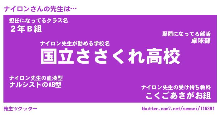 | 意味不明あだ名 | 『ペロリンナイロン』『永久保存ナイロン』 |