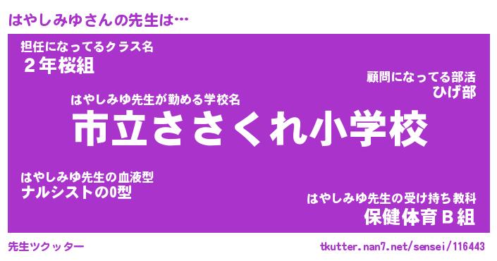| 伝説のあだ名 | 『伝説のスナイパーはやしみゆ』 |