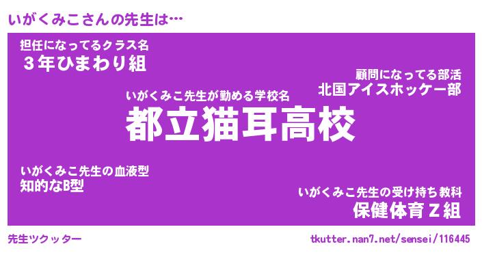 | ファンタジー風あだ名 | 『イガフェル』『エターナルイガクミコー』 |