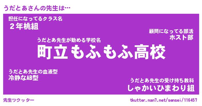 | 意味不明あだ名 | 『ペロリンうだとあ』『永久保存うだとあ』 |