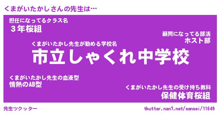 | ヒーロー風カッコイイあだ名 | 『スーパークマガイタカシ』 |