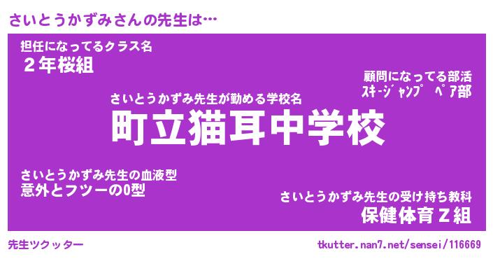 | 伝説のあだ名 | 『封印されし竜騎士さいとうかずみ』 |