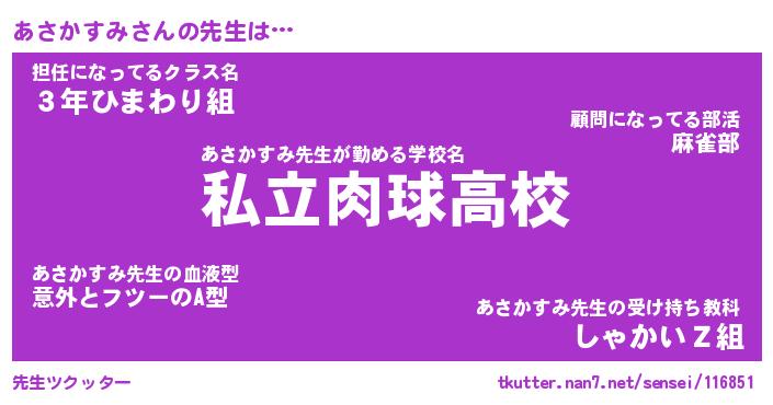 | ヘコむあだ名 | 『あさふぇ~』『なまこ酢』 |