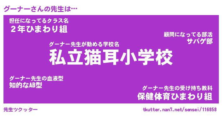 | ヘコむあだ名 | 『グーにー』『なまこ酢』『グー太郎』 |
