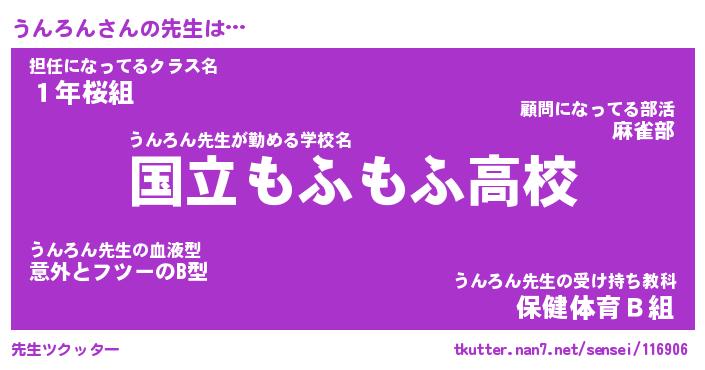 | 意味不明あだ名 | 『ペロリンうんろん』『永久保存うんろん』 |