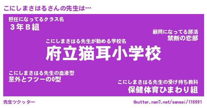 | 恥ずかしいあだ名 | 『プリティーこにしまさはる』『こにちん』 |