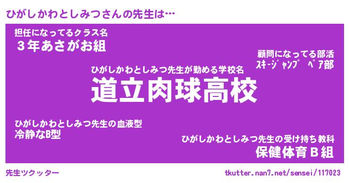 | 意味不明あだ名 | 『ペロリンひがしかわとしみつ』 |