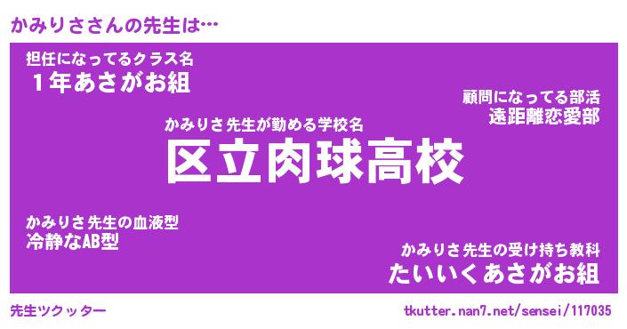| 意味不明あだ名 | 『ペロリンかみりさ』『永久保存かみりさ』 |