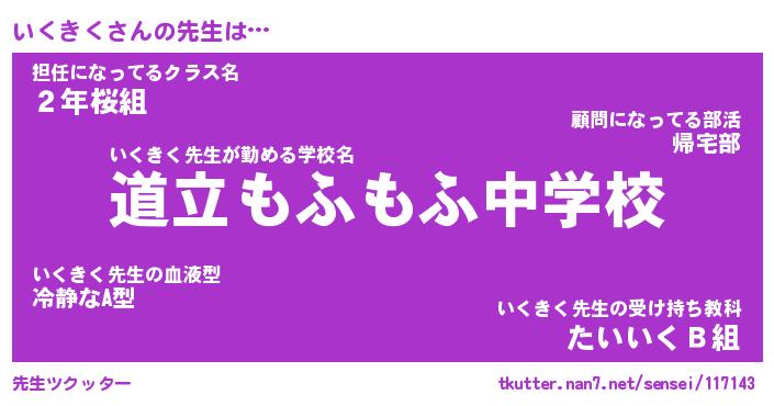 | 意味不明あだ名 | 『ペロリンいくきく』『永久保存いくきく』 |