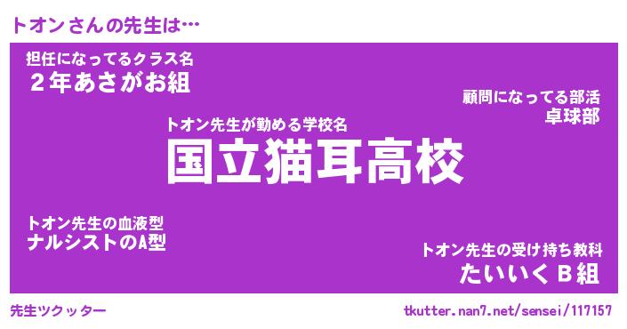 | ファンタジー風あだ名 | 『トオフェル』『エターナルトオンー』 |