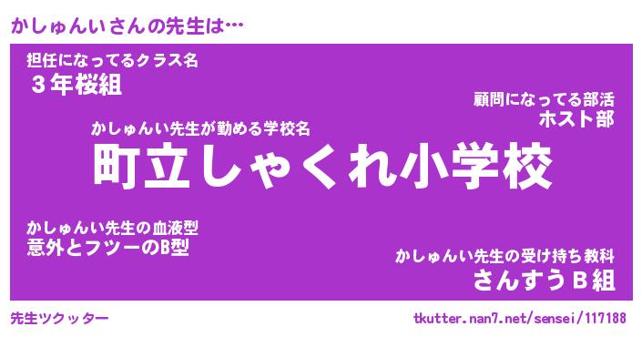 | ヒーロー風カッコイイあだ名 | 『スーパーカシュンイ』『銀牙騎士カシ』 |