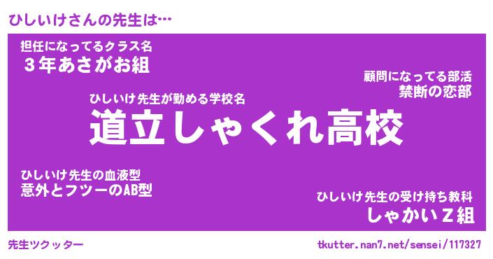 | 意味不明あだ名 | 『ペロリンひしいけ』『永久保存ひしいけ』 |