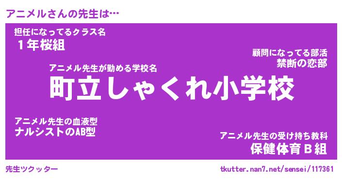 | 意味不明あだ名 | 『ペロリンアニメル』『永久保存アニメル』 |