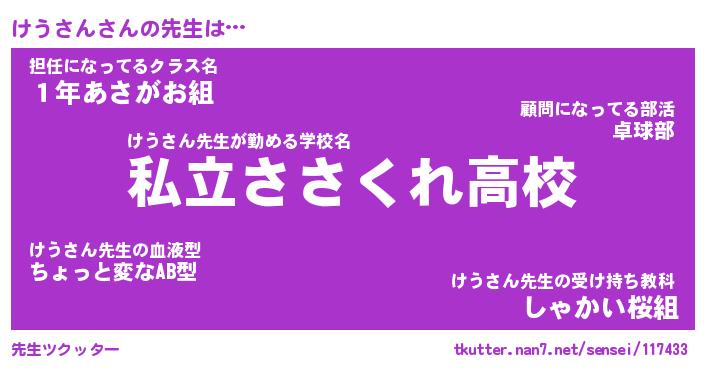 | 意味不明あだ名 | 『ペロリンけうさん』『永久保存けうさん』 |