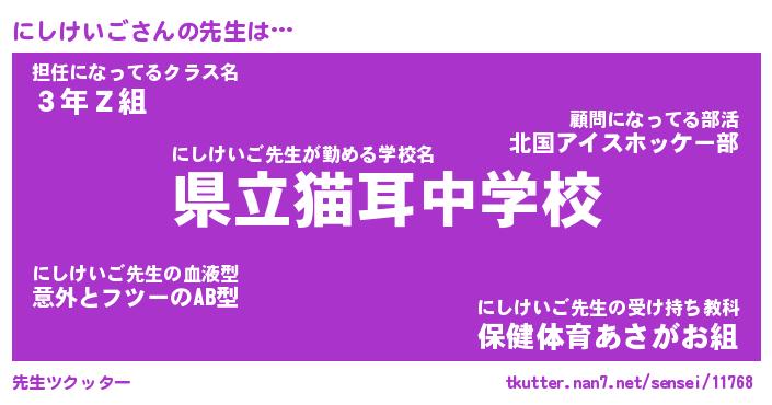 | ファンタジー風あだ名 | 『ニシフェル』『エターナルニシケイゴー』 |