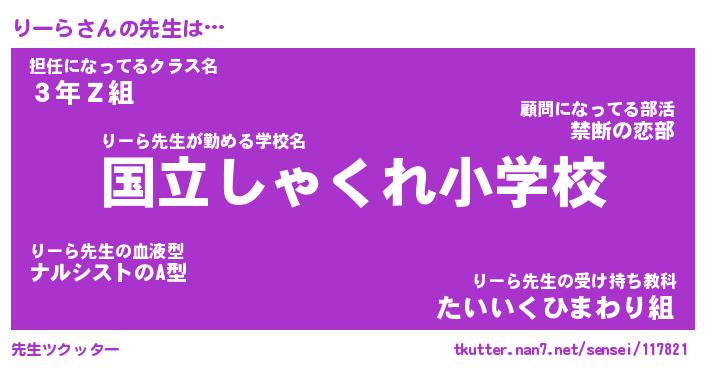 | 伝説のあだ名 | 『伝説のスナイパーりーら』 |