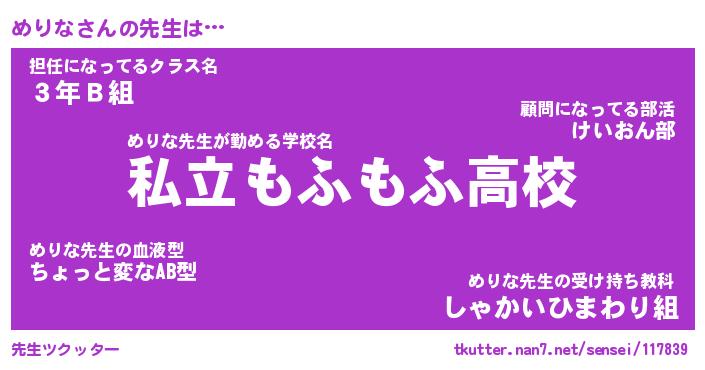 | ファンタジー風あだ名 | 『メリフェル』『エターナルメリナー』 |