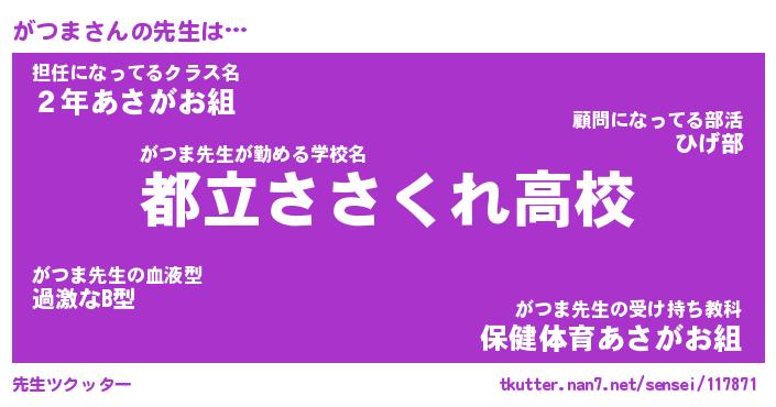 | ヘコむあだ名 | 『がつもー』『なまこ酢』『がつっぺ』 |
