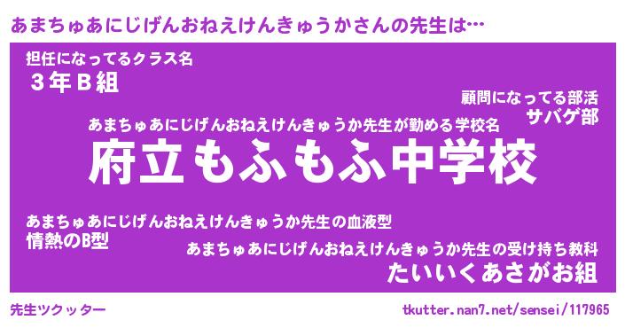 | 意味不明あだ名 | 『ペロリンあまちゅあにじげんおねえけんきゅうか』 |