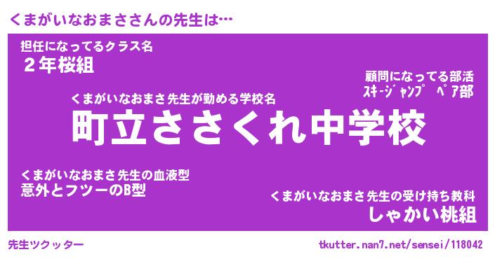 | 伝説のあだ名 | 『封印されしスナイパーくまがいなおまさ』 |