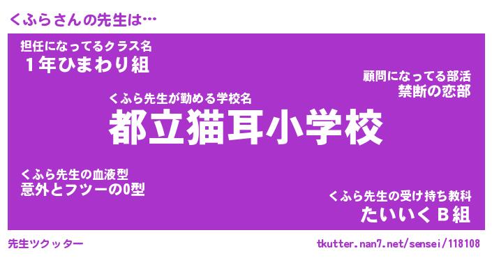 | ヘコむあだ名 | 『くふにー』『牛乳』『くふ太郎』 |