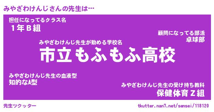 | 男性向けラノベタイトル風あだ名 | 『みやざわけんじの憂鬱』 |