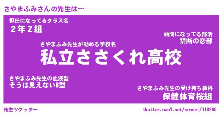 | ファンタジー風あだ名 | 『サヤフェル』『エターナルサヤマフミー』 |
