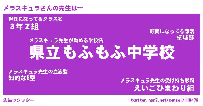 | ヘコむあだ名 | 『メラにゅー』『豆乳』『メラ太郎』 |