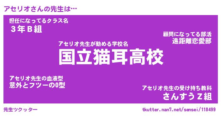 | 意味不明あだ名 | 『ペロリンアセリオ』『永久保存アセリオ』 |