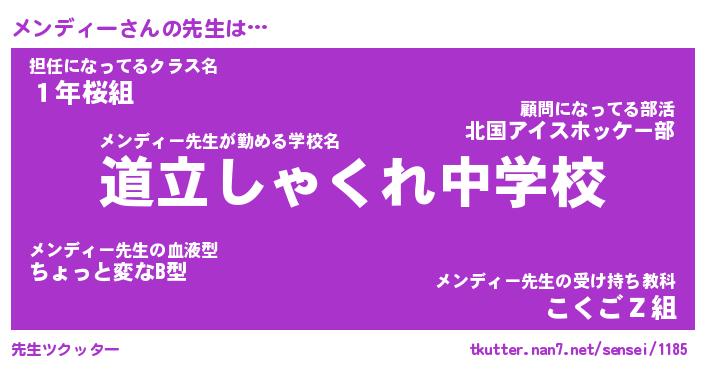 | ツイッター | メンディーさんのツイッターID『dendenmushi_nyan』 |