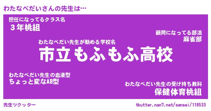| ヘコむあだ名 | 『わたにゅー』『牛乳』『わたっちょ』 |