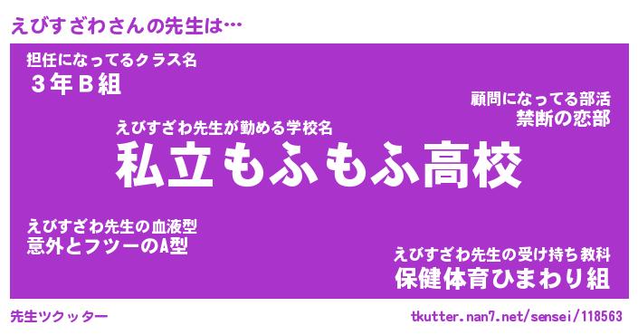 | ヒーロー風カッコイイあだ名 | 『スーパーエビスザワ』『幻影騎士エビ』 |