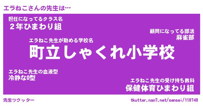 | 意味不明あだ名 | 『ペロリンエラねこ』『永久保存エラねこ』 |