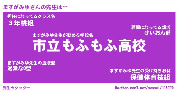 | ファンタジー風あだ名 | 『マスフェル』『エターナルマスガミユー』 |