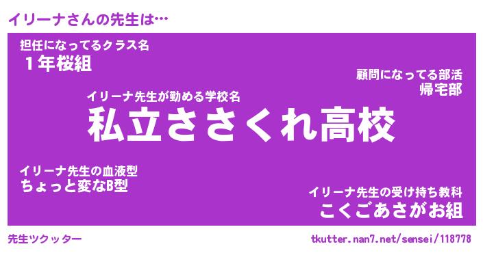 | 意味不明あだ名 | 『ペロリンイリーナ』『永久保存イリーナ』 |