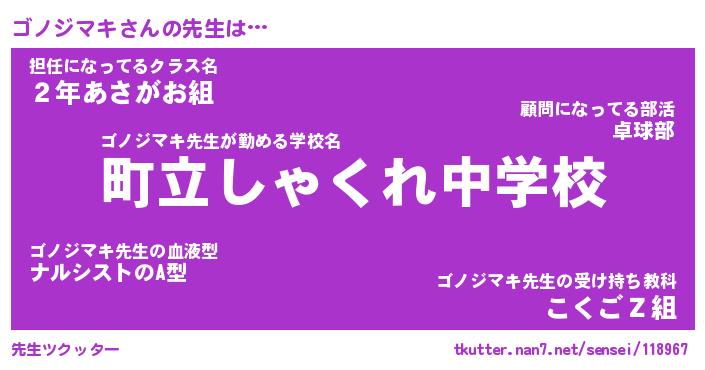 | ファンタジー風あだ名 | 『ゴノフェル』『エターナルゴノジマキー』 |
