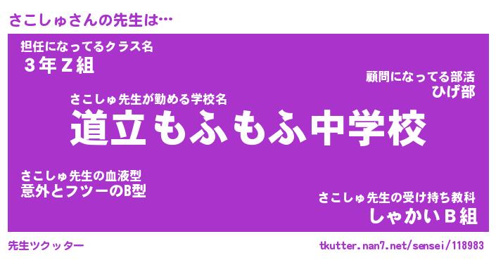 | 意味不明あだ名 | 『ペロリンさこしゅ』『永久保存さこしゅ』 |