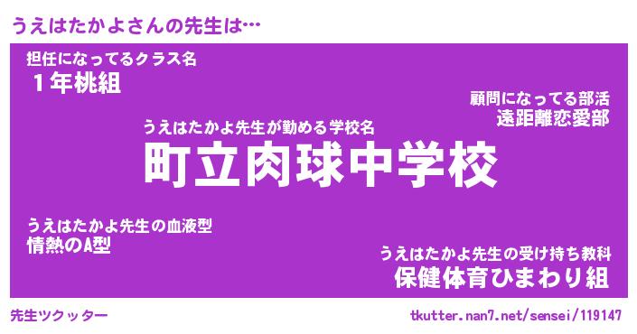 | ヘコむあだ名 | 『うえふぇ~』『牛乳』『うえ太郎』 |