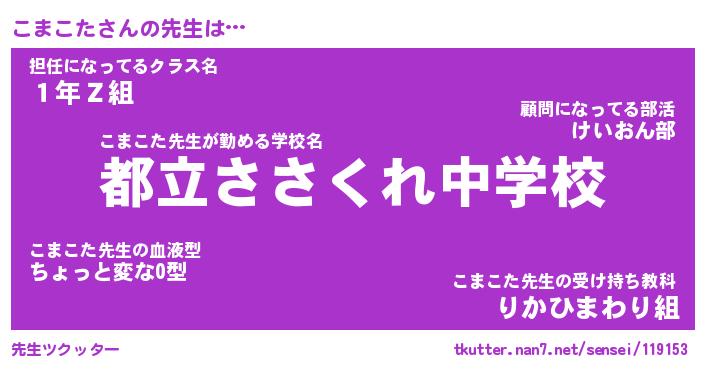 | ヘコむあだ名 | 『こまもー』『つくし』『こまを』 |