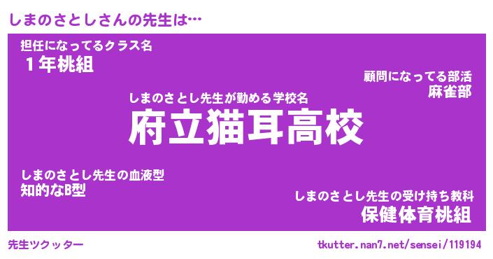 | ヘコむあだ名 | 『しまにー』『つくし』『しまぷりん』 |
