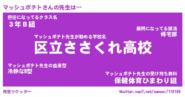 | 伝説のあだ名 | 『封印されしスナイパーマッシュポテト』 |
