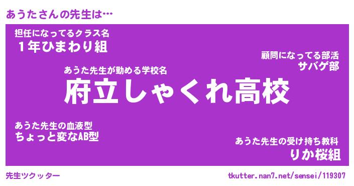 | 意味不明あだ名 | 『ペロリンあうた』『あうたフォーエバー』 |