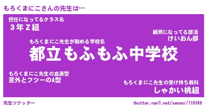 | 肩書あだ名 | 『もろくまにこ店長』『もろくまにこ担任』 |