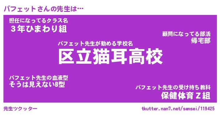 | ヒーロー風カッコイイあだ名 | 『スーパーバフェット』『天弓騎士バフ』 |