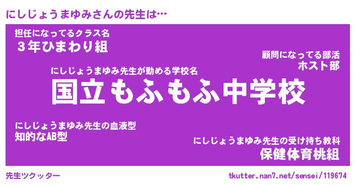 | 肩書あだ名 | 『にしじょうまゆみ店長』 |