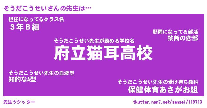 | ポケモン風あだ名 | 『ソウチュウ』『ソウダダネ』 |