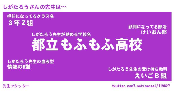 | ファンタジー風あだ名 | 『シガフェル』『エターナルシガタロウー』 |