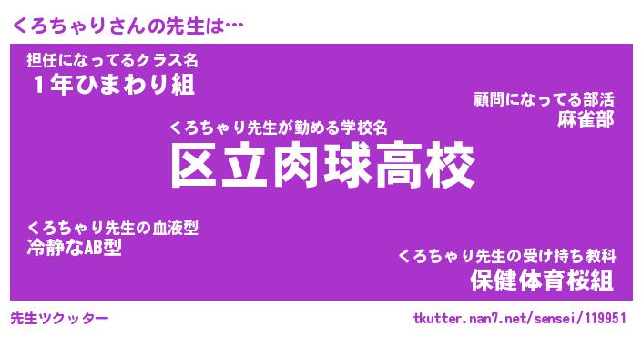 | ファンタジー風あだ名 | 『クロフェル』『エターナルクロチャリー』 |
