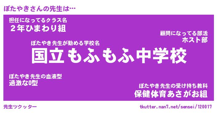 | 欧米人風あだ名 | 『マイケルぽたやき』『ウサインぽたやき』 |