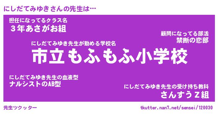 | 男性向けラノベタイトル風あだ名 | 『にしだてみゆきの憂鬱』 |